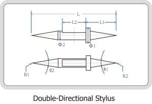 | Double-Directional Stylus | B3001 | Cemented Carbide | 28 | 10 | 8 | 5 | 3 | 20 | 20 | 0.025 | 20 |
