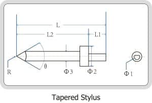 | Tapered Stylus | N3001 | Cemented Carbide | 24 | 8 | 16 | 2.2 | 5 | 3 | 24 | 0.025 | - |