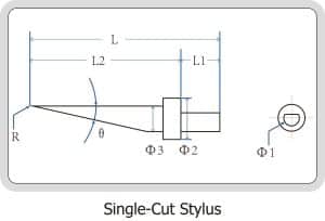 | Diamond Stylus | D3001 | Diamond | 24 | 8 | 16 | 2.2 | 5 | 3 | 60 | 0.002/0.005 | - |